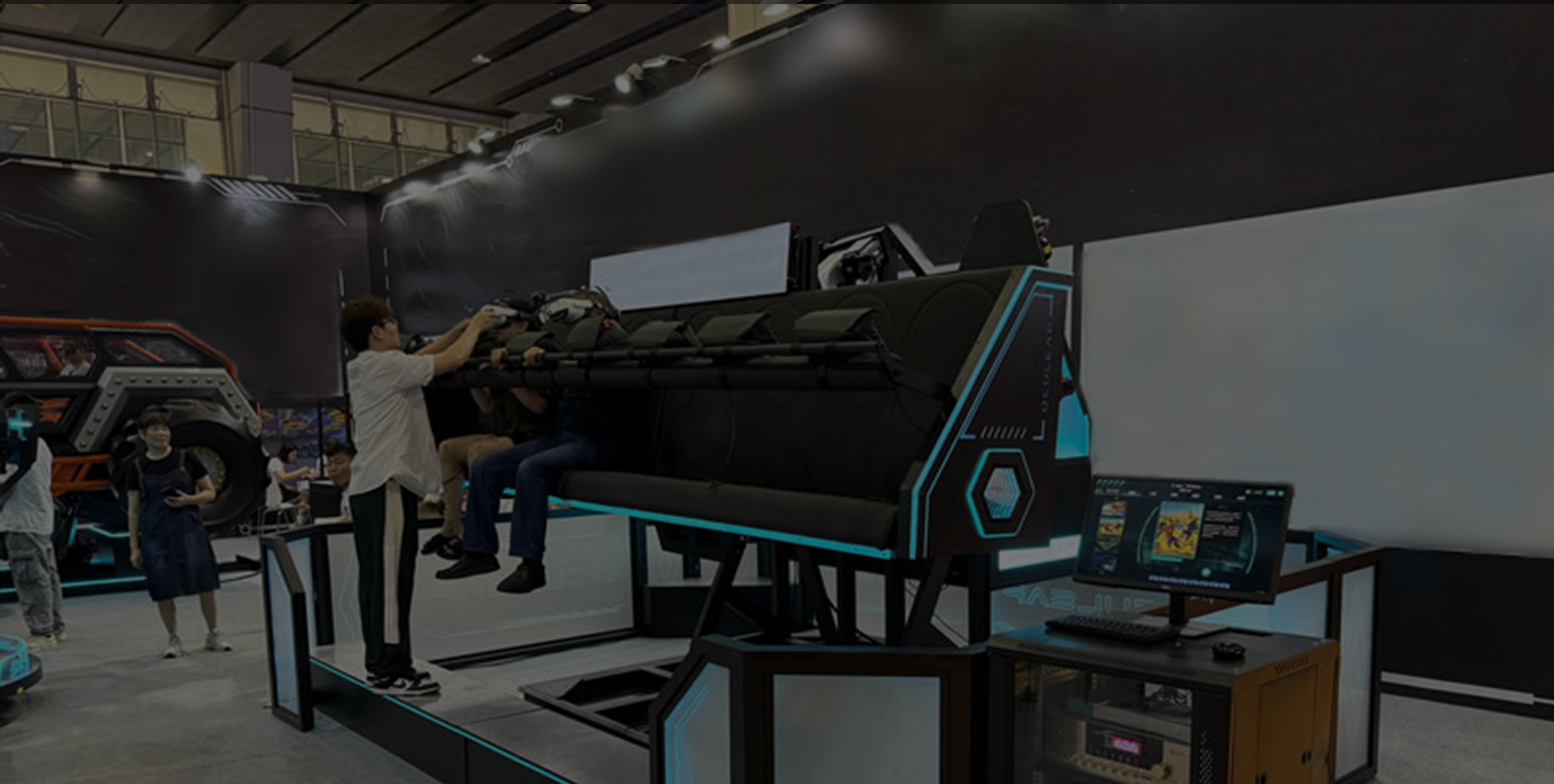 项目介绍: 采用智能AI方案结合动感控制技术,配备高精度六自由度动感平台,真正做到与游戏紧密结合,可以模拟爬升、俯冲、倾斜、颠簸、平移、撞击等高难度的惊险动作,从动感、驾驶操控、赛道、仿真方面给予客户超真实的驾驶体验