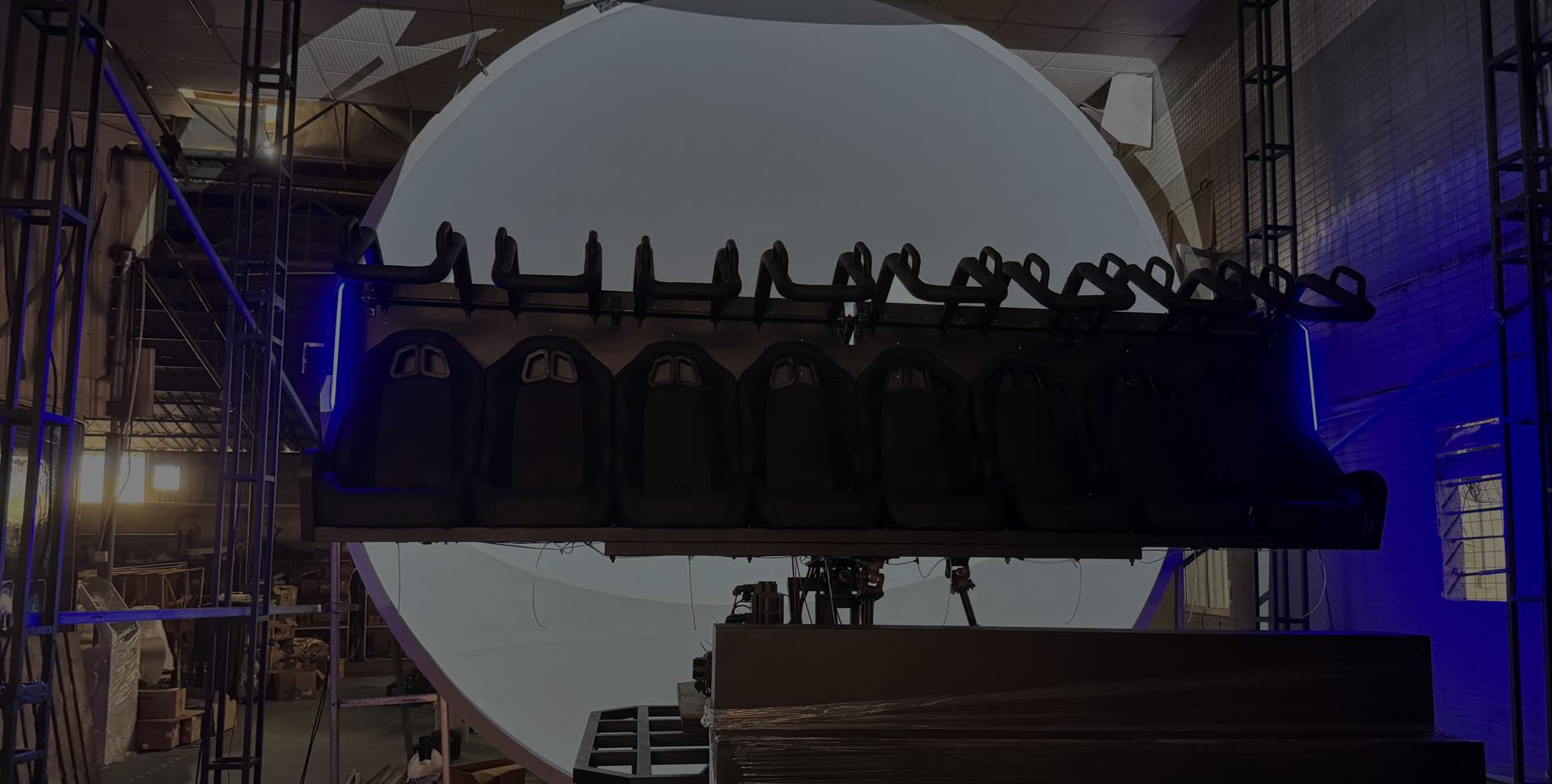 项目介绍: 轨道影院是通过地面轨道将客人带入观影区,高清采用三自由度悬空式动感左右与弧幕影院,高清4K画面,通过动感传送平台和运动提升技术,结合4K高清弧幕影视画面及仿真物理吹风、闪电、下雨、下雪、撞击、扫腿等物理特效,带给顾客体验彷如身临其境,为客户打造一场惊心动魄的视觉盛宴。