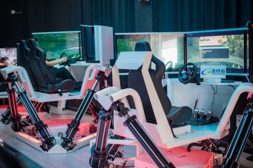 1:1还原模拟赛车体验感,方向盘、刹车、油门实时反馈,让玩家第一视角感受赛道漂移刺激;赛车造型,重量轻,易移动,可换场地灵活运营。多主题赛道场景和联机竞技结合,让玩家过足车瘾。